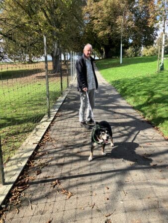 I have another passport stamp, ready for my journey home. I went to see my sister’s vet yesterday, so that I could be wormed and have it written up in my passport. My sister came with me, which was nice of her. Then we went for a walk near where she lives. Our walk was at a place called Heiternplatz. It has lovely views over Zofingen and away to the mountains beyond. It was a lovely sunny afternoon, so I was able to show Dad how beautiful it was. Mum and I had been last time we were here, so we already knew it was lovely.