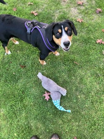 The carved owl ornament has a rotten base. Mum likes it quite a lot and is still trying to save it. Pebbles just sees it as rotten wood to chew and ran off with it. Poor Mum had to work very hard to get it back before Pebbles had completely destroyed it. Sadly, she wasn’t in time with the apple tree grafting root stock, that Pebbles pulled out of the ground and chewed before Mum realised what she had stolen.