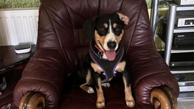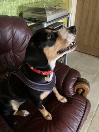 Pebbles had a lovely birthday. She really likes her new collar with Swiss flags on it, so that’s good news. She had a lovely walk with Mum too. They met people and dogs and Pebbles behaved herself very well all things considered. Pebbles said the only thing that would have made her birthday better would have been if Dad had been at home, but he did ring her and wished her happy birthday, so he hadn’t forgotten her.
