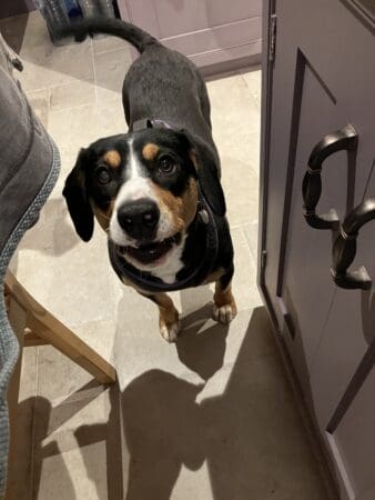 Pebbles has gone paddling. She got a bit of a surprise after all the rain. Recently she has been running in and out of the rose bushes between the path and the grass. When she did that yesterday she was up to her knees in water. Our garden is back to having its very own water course. When it was there before, Pebbles didn’t have free run of the garden so she’s just not used to it. I’m guessing she’s going to be investigating all the other parts of the garden which flood too. Given how much she likes mud, this could be a very dirty pastime.