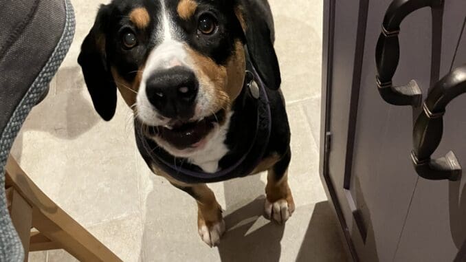 Pebbles has gone paddling. She got a bit of a surprise after all the rain. Recently she has been running in and out of the rose bushes between the path and the grass. When she did that yesterday she was up to her knees in water. Our garden is back to having its very own water course. When it was there before, Pebbles didn’t have free run of the garden so she’s just not used to it. I’m guessing she’s going to be investigating all the other parts of the garden which flood too. Given how much she likes mud, this could be a very dirty pastime.