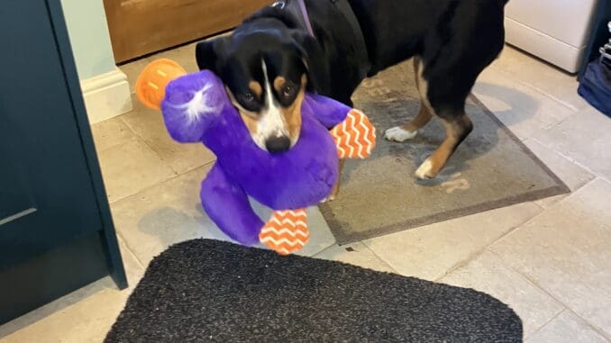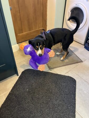 Pebbles loves her duck. I definitely chose the right present for her. Duck has been added to the group of special soft toys with Sloth, Hoppig and Moose. He immediately had the honour of being carried outside to see the garden with her. Then she ran around the house carrying him everywhere.
