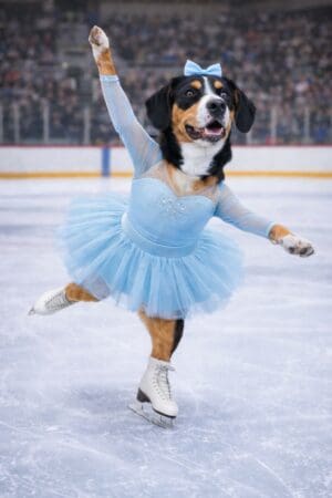 Pebbles fancies herself as a figure skater. The first Mum knew of it was hearing the ice on the pond cracking. Mum dropped what she was doing and went racing over to the pond. Pebbles had gone in at a shallow part of the pond, but when the ice gave way beneath her, she then got traction on the ice with her front paws and ran right across the middle to get off.