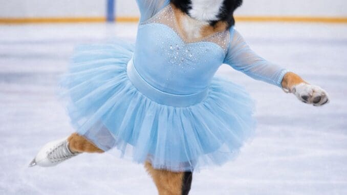 Pebbles fancies herself as a figure skater. The first Mum knew of it was hearing the ice on the pond cracking. Mum dropped what she was doing and went racing over to the pond. Pebbles had gone in at a shallow part of the pond, but when the ice gave way beneath her, she then got traction on the ice with her front paws and ran right across the middle to get off.