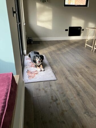I’d love it to be dry and sunny again today. If it is Mum says we will do some more gardening and then chill out in the steam room. Mum loves natural light and the window seat is a great place to read. She won’t let me up there, so I can only imagine, but I can lie on the rug again. Mum is still sorting out some more cushions to make her spot comfortable. I rather fear that if it gets too comfy we won’t get her out of it. I really need to find my steps out of the shed so I can join her.