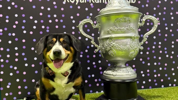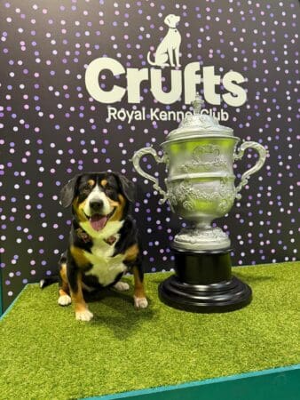 Today I have a picture of my great-niece Polly having fun. She was pretending she had won the whole of Crufts and sitting with the trophy. What a wonderful dream that would be for any of us. It certainly won’t be one of our breed this year and probably not for a very long time. We’re not really show dogs. It’s not our natural instinct to be in a show ring with strangers running their hands over us. If it were more a test of intelligence, mental reasoning and memory, we’d beat almost any dog paws down. Showing doesn’t come quite as naturally to us. It can give us the opportunity to have some fun in the ring with our humans, but we never make it awfully easy for them.