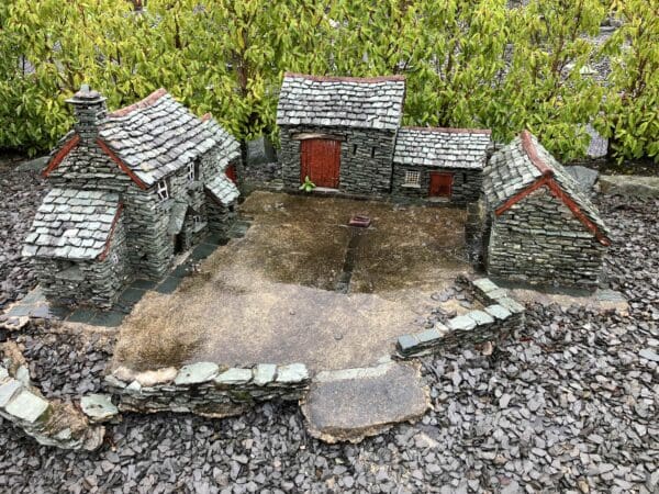 Only Mum could choose to visit a model village in the pouring rain. This is what happens when you go on holiday without your beloved dog. If I were there, Mum would be content with taking pictures of me. As I’m not there she needs something else to photograph. So far that would be one selfie and seventy-six pictures of a model village. Dad did not go with her. He took one look at the weather and opted to sit drinking a cup of coffee in front of an open fire. Mum was not so easily put off. Her excuse, apart from the fact that she’s missing me desperately, was that she wanted some ideas of building that could be modelled to go along the railway at home.