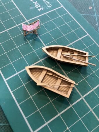 Yesterday, the sum total of Mum’s ‘work’ amounted to two rowing boats and a deck chair which looked as though it had been through a hurricane. She has started building some of the scenery for hers and Dad’s model railway. In one corner she is planning a Cornish fishing village. The village also has a little beach. Mum is living vicariously through her models. She has a VW Campervan, with surf boards on the roof. She also has some beach huts to build, quite a few deck chairs that she hopes turn out better than the first one, some more rowing boats, life belts and lobster pots. I sit watching as she glues herself to the tiny pieces of wood and can only be glad she’s using a glue that isn’t too strong.