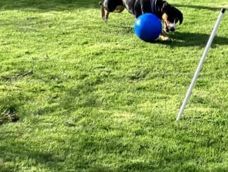 Right or left nosed? Pebbles is demonstrating her skills with the Boomer ball an they are impressive.